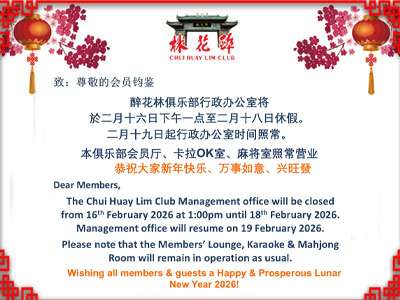 Established since1845, Chui Huay Lim Club has a rich history of more than 170 years. It was originally setup for Teochew businessmen to engage in business networking and recreational activities.
